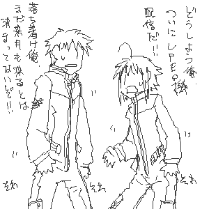 3主人公ズ。文章では意外と変な顔してたり笑ってたりとかするんですが絵にすると大概無表情。