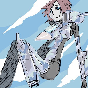 メビウス1。空色リボンで空色の目。髪は茜色、夕焼け空。